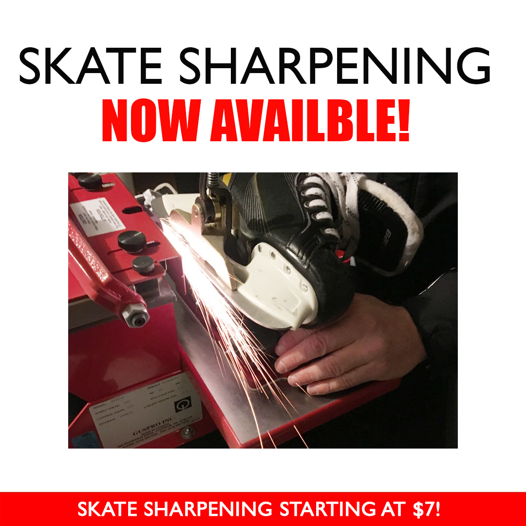- Skate Sharpening now available. $7 for skates bought in store and $10 for skates bought elsewhere.